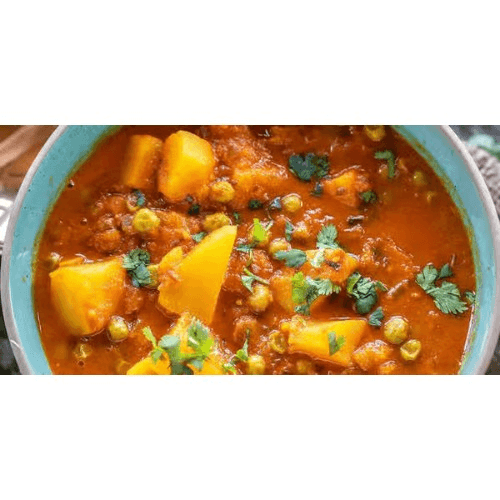 A vegetarian north Indian curry made with potatoes, peas and aromatic spices in a rich tomato base spice.
