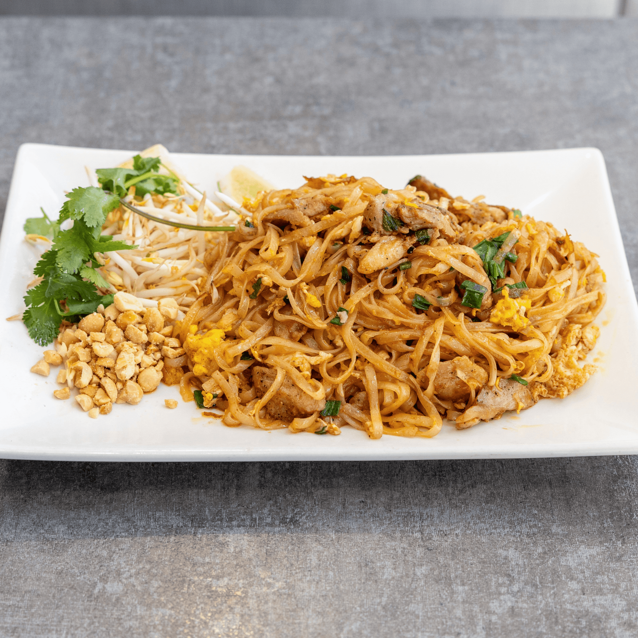 Pad Thai Gà. Comes with bean sprouts, lime, ground peanuts & green onions