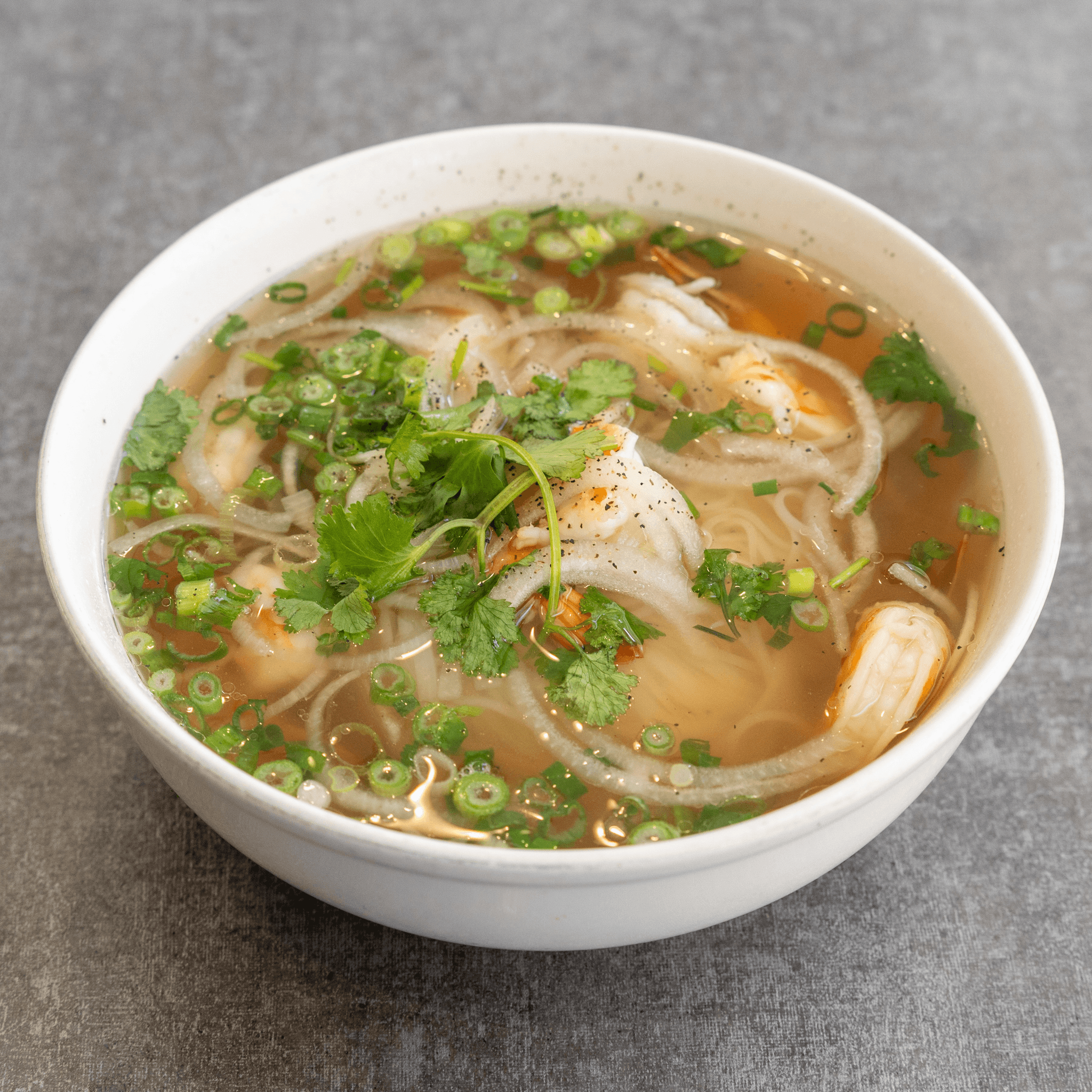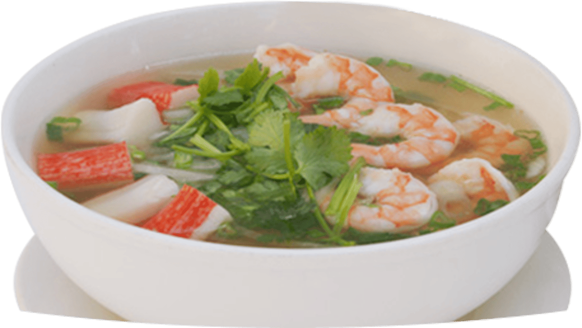 Hủ Tiếu Tôm Cua. Choice of egg or rice noodle with shrimp, pork & imitation crab