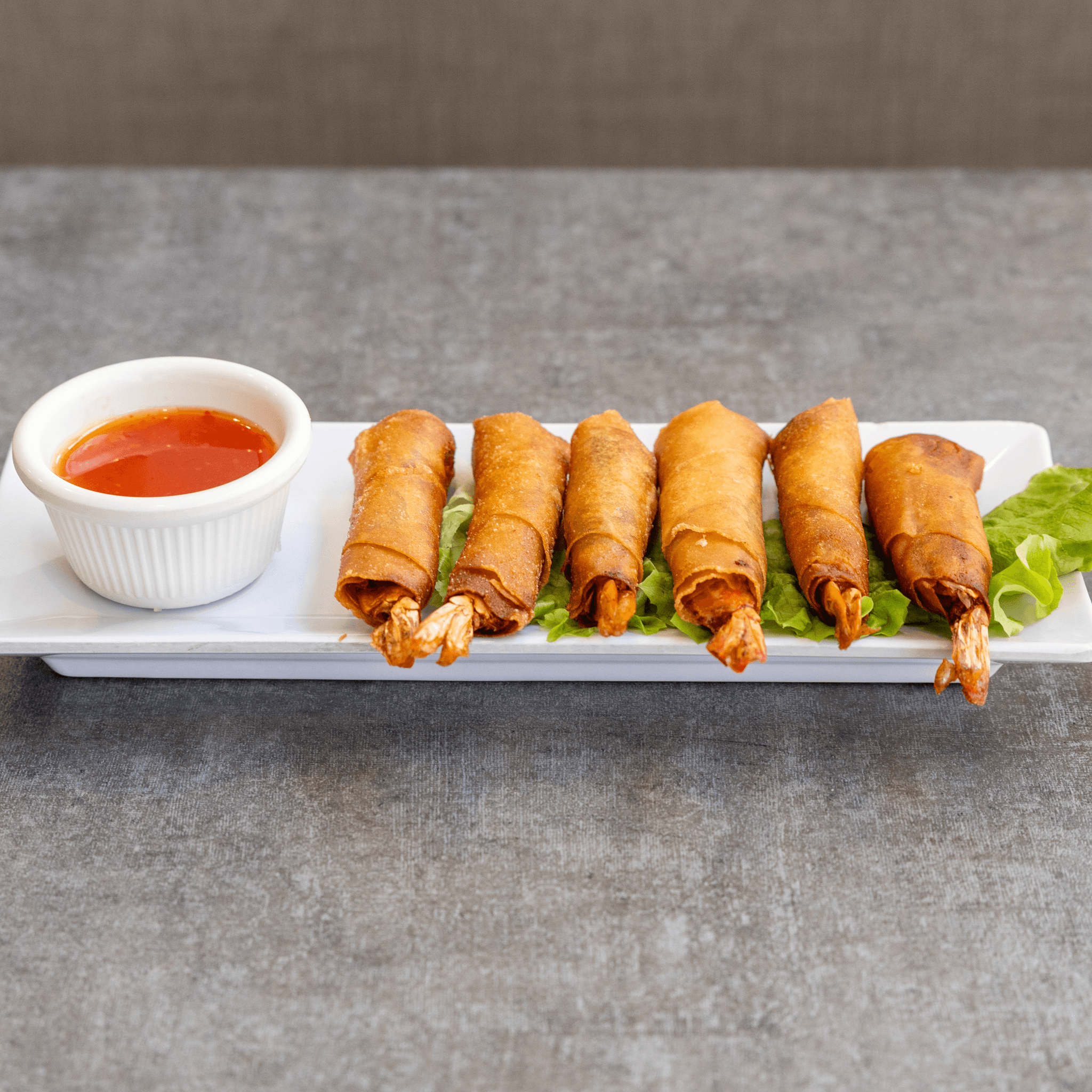 Tôm Chiên. 6 pieces. Fried shrimp rolls served with sweet chili sauce