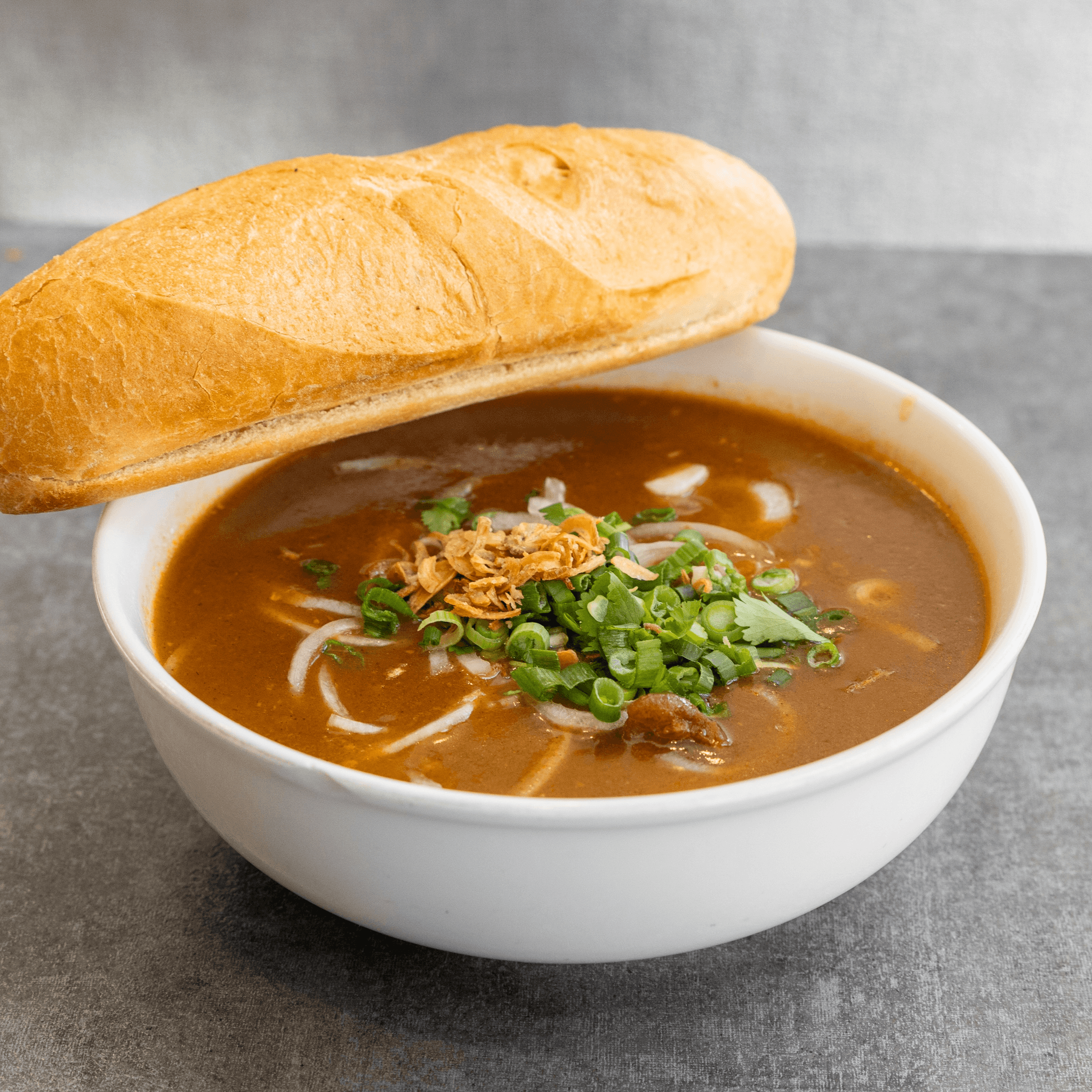 Bánh Mì Bò Kho. Beef stew braised in lemongrass, spices & carrots. Served with Vietnamese baguette