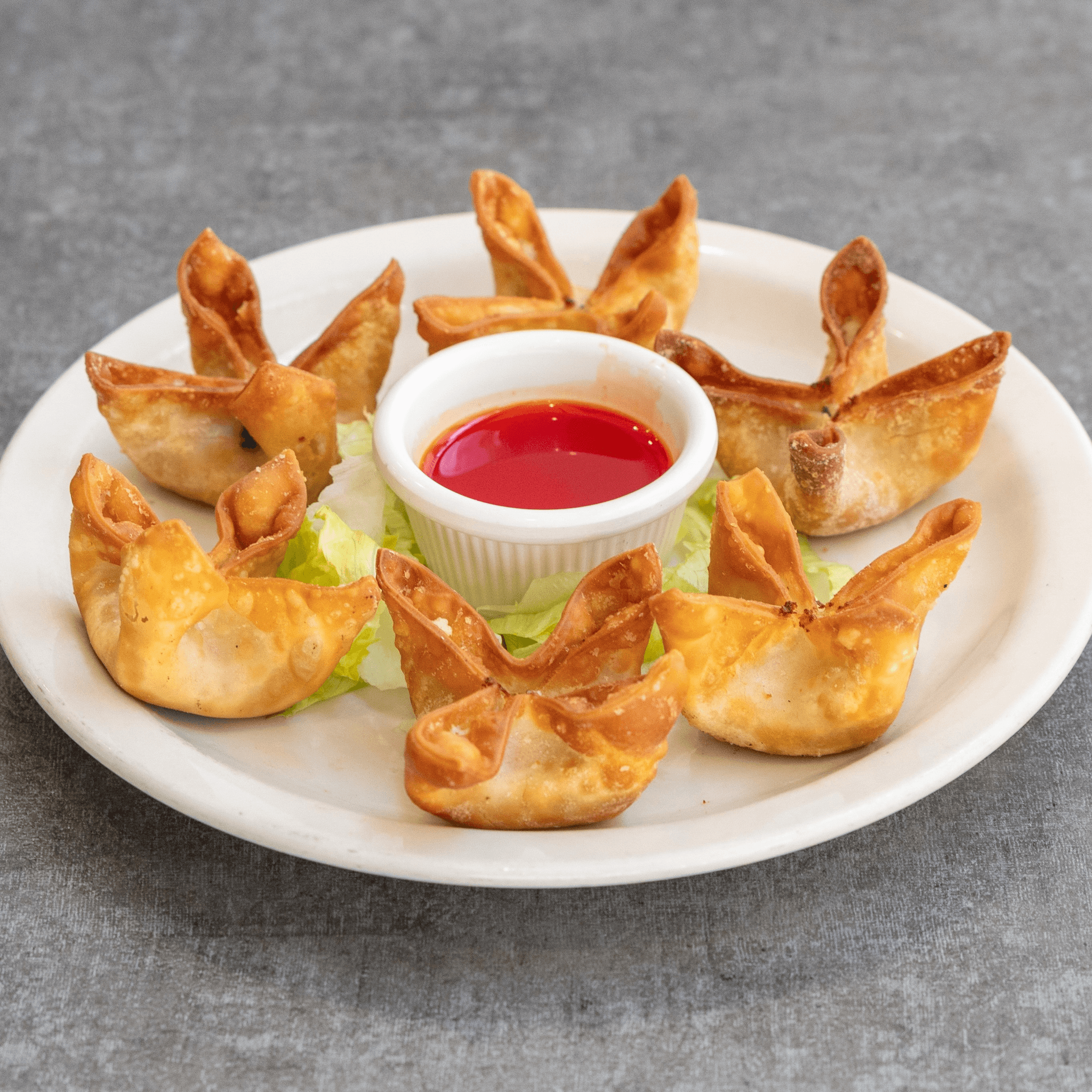 6 pieces. Crispy wontons filled with a creamy mixture of crab meat and green onions